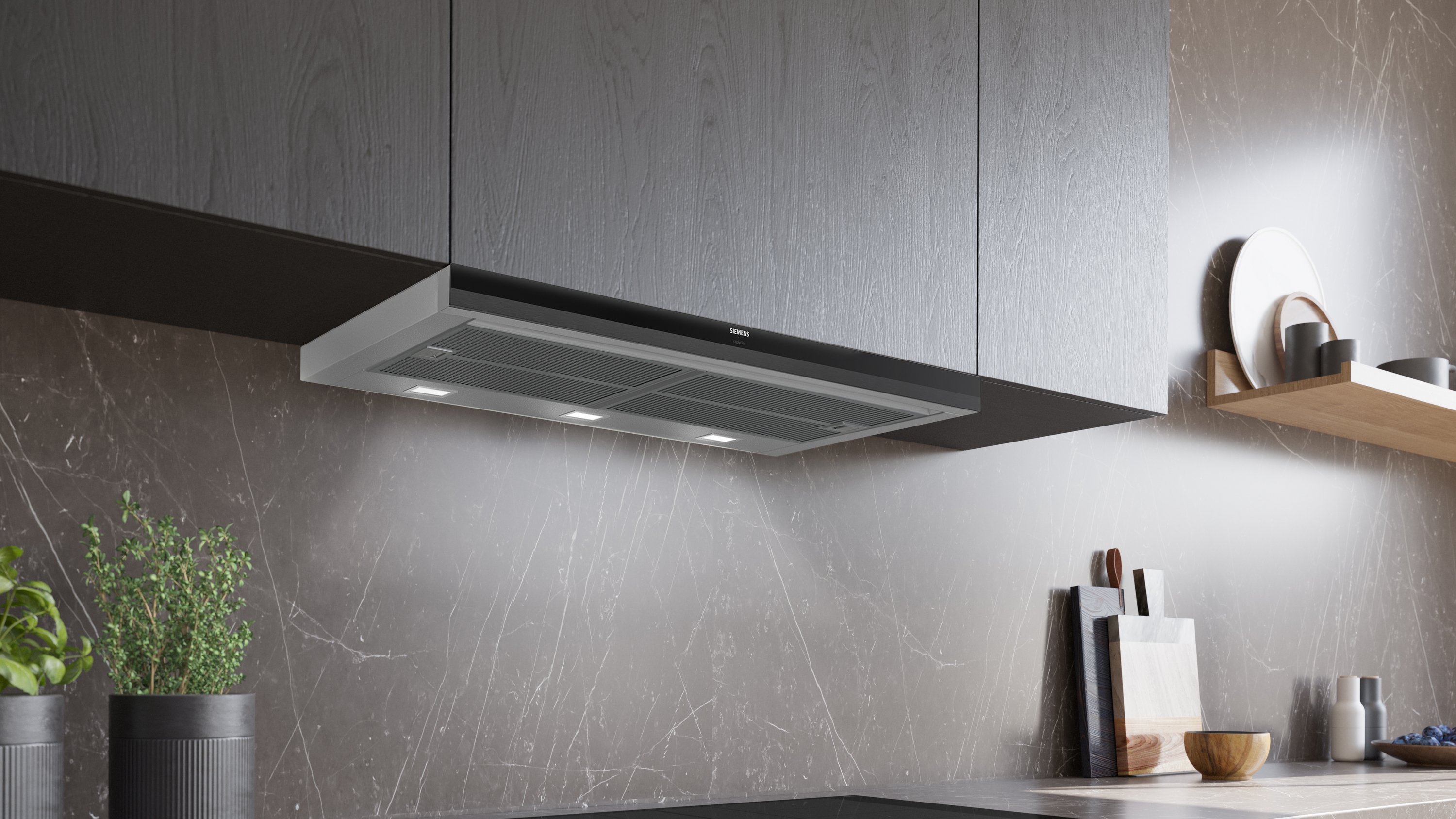 - Die leistungsstarke Flachschirmhaube für eine fast unsichtbare Platzierung im Oberschrank.
