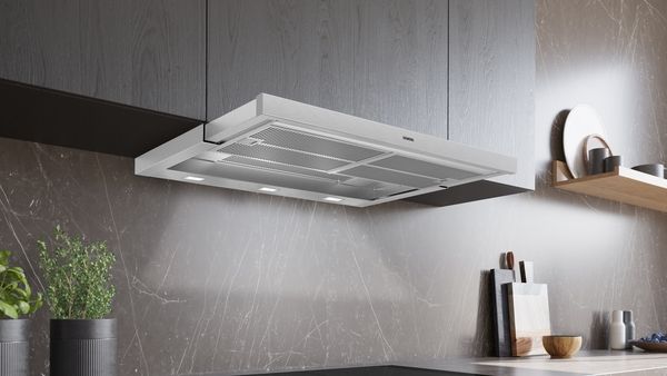 - Die leistungsstarke Flachschirmhaube für eine fast unsichtbare Platzierung im Oberschrank.