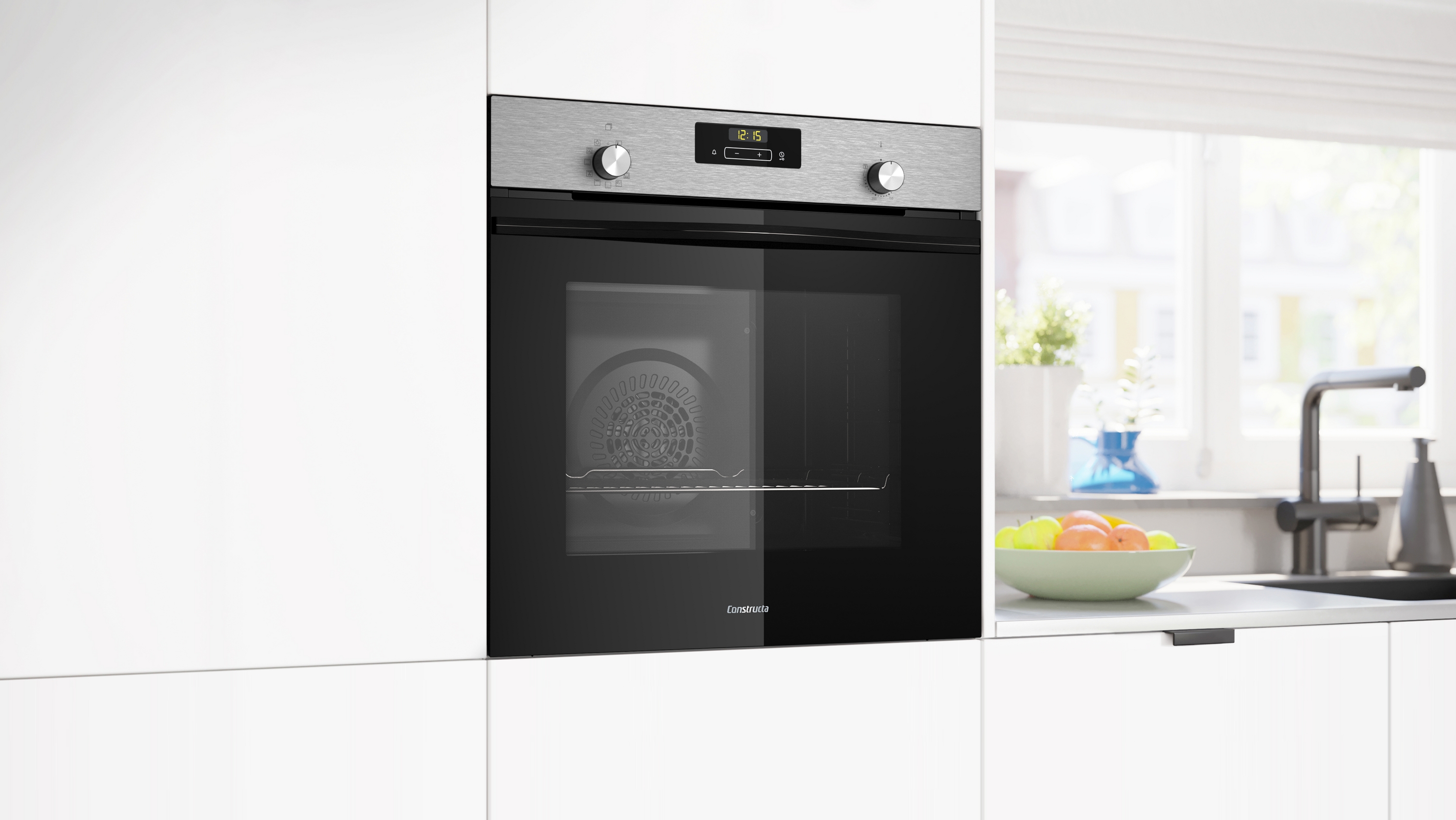 - Der Constructa Eco-Line Backofen mit 8 Heizarten, darunter Air Fry und Grillblech, elektronischer Uhr, leicht zu reinigenden versenkbaren Drehknöpfen und hydrolytischer Reinigung in der sehr sparsamen Energieeffizienzklasse A+. Made in Europe.