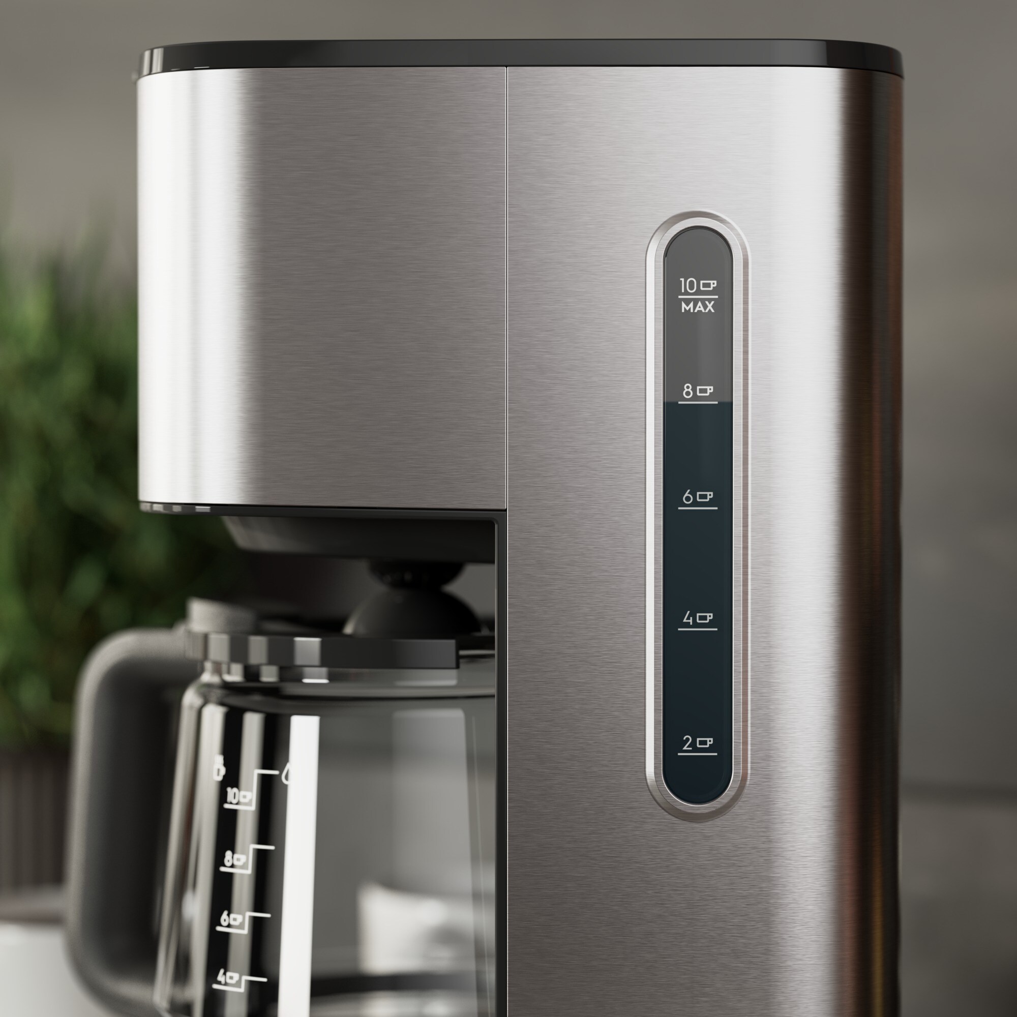 Die leicht ablesbare Wasserstandsanzeige erlaubt präzise Abmessung von 2 - 10 Tassen frisch gebrühten Kaffees.