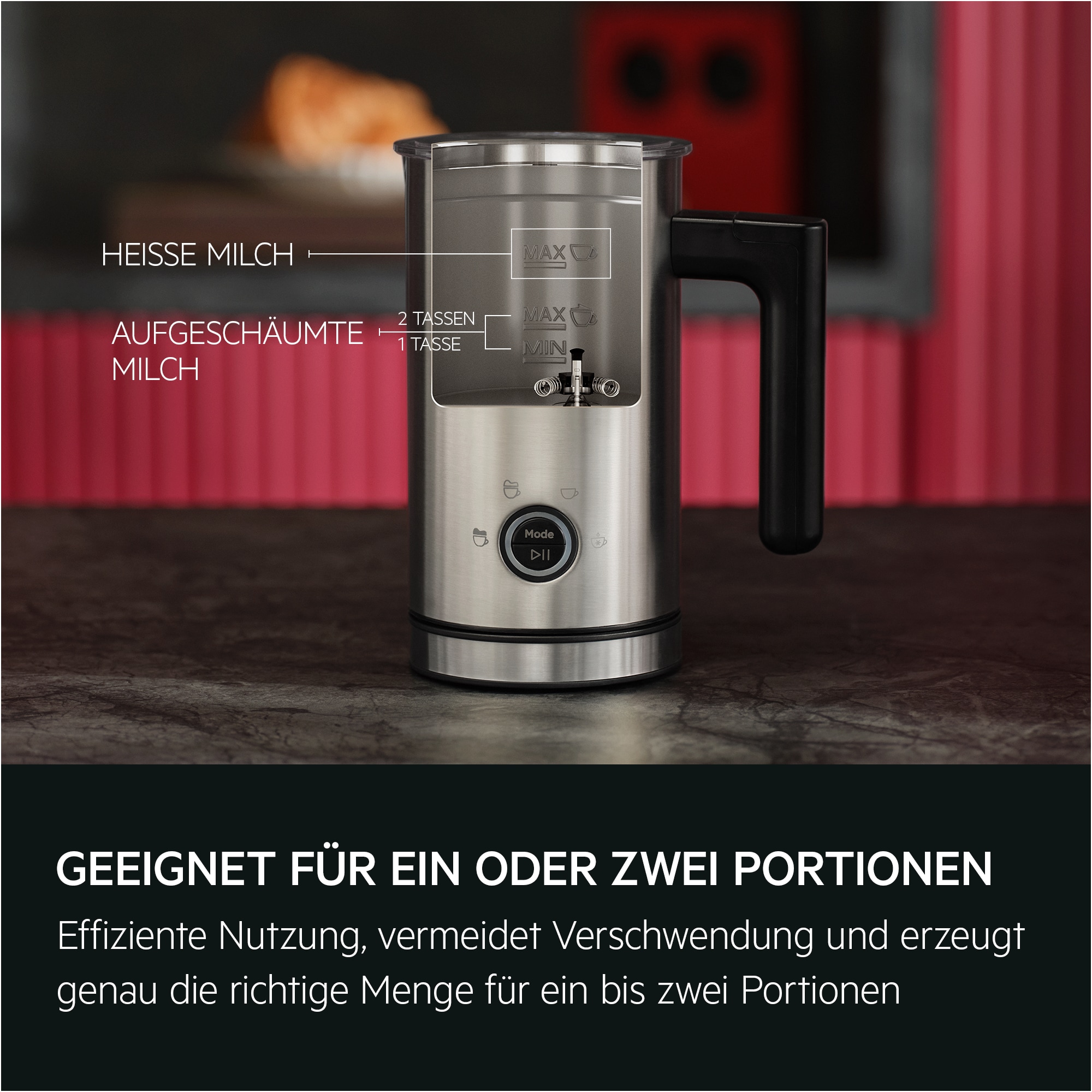 Der Milchaufschäumer hat genau die richtige Größe, um genug Milch für ein bis zwei Portionen aufzuschäumen. So kannst du ihn effizient nutzen und vermeidest Verschwendung.
