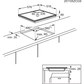 - Herdgebundenes Kochfeld, kombinierbar mit einem Einbauherd
