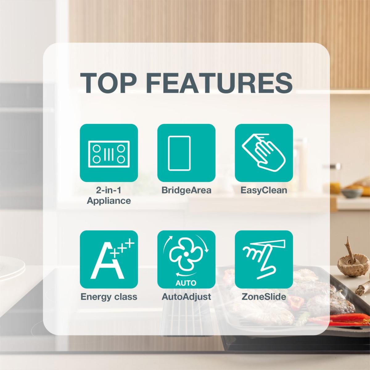 - Abmessungen der 2. Kochzone: 190X210 mm