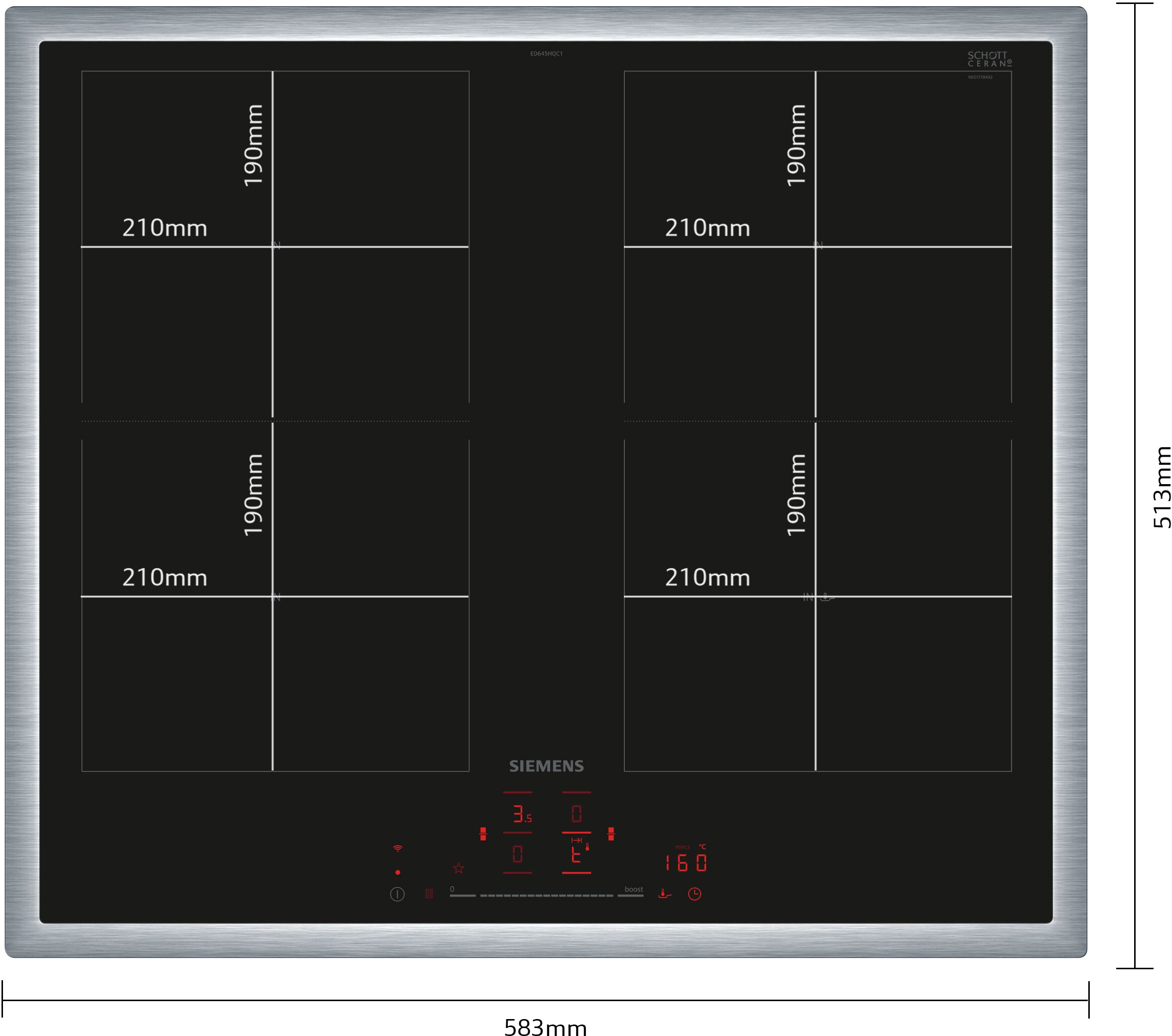 - Kombi-Induktion: verbinde zwei Induktionszonen zu einer großen Kochfläche.