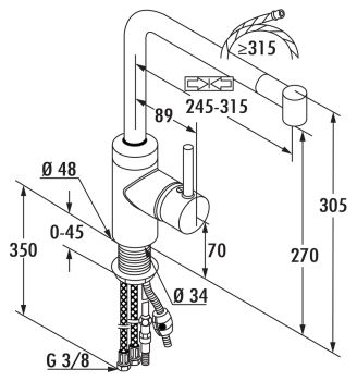 Mit schwenk-/herausziehbarem Teleskop-Auslauf, seitlichem Hebel, Keramikkartusche, Laminarstrahlregler und Schnellkupplung, Schwenkbereich 220°, Bohr-Ø 35 mm