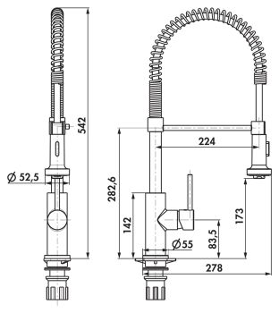 - mit in einer Spiralfeder geführten 2-Strahl-Handbrause und Keramikkartusche