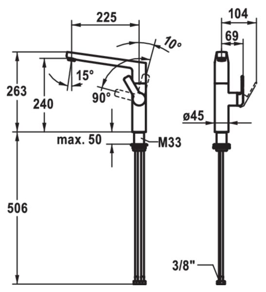 Mit schwenkbarem Auslauf - seitlichem Hebel und Keramikkartusche - Schwenkbereich 360° (Neoperl® Cascade®) - Bohr-Ø 35 mm - Positionierung des Hebels nur rechts möglich - Sicherheit für Kinder: Kaltwasser bei Hebelposition vorne - Abstand Wand zu Mitte Tischbohrung min. 26 mm - OptimalSpace: großzügiger Wasch-/Arbeitsbereich - KWC Steuerpatrone M 35 H (mit Keramikscheibentechnik - Auslaufmenge und Temperatur stufenlos einstellbar) - QuickInstallation: Befestigung mit Gewindestutzen M33 x 1. 5