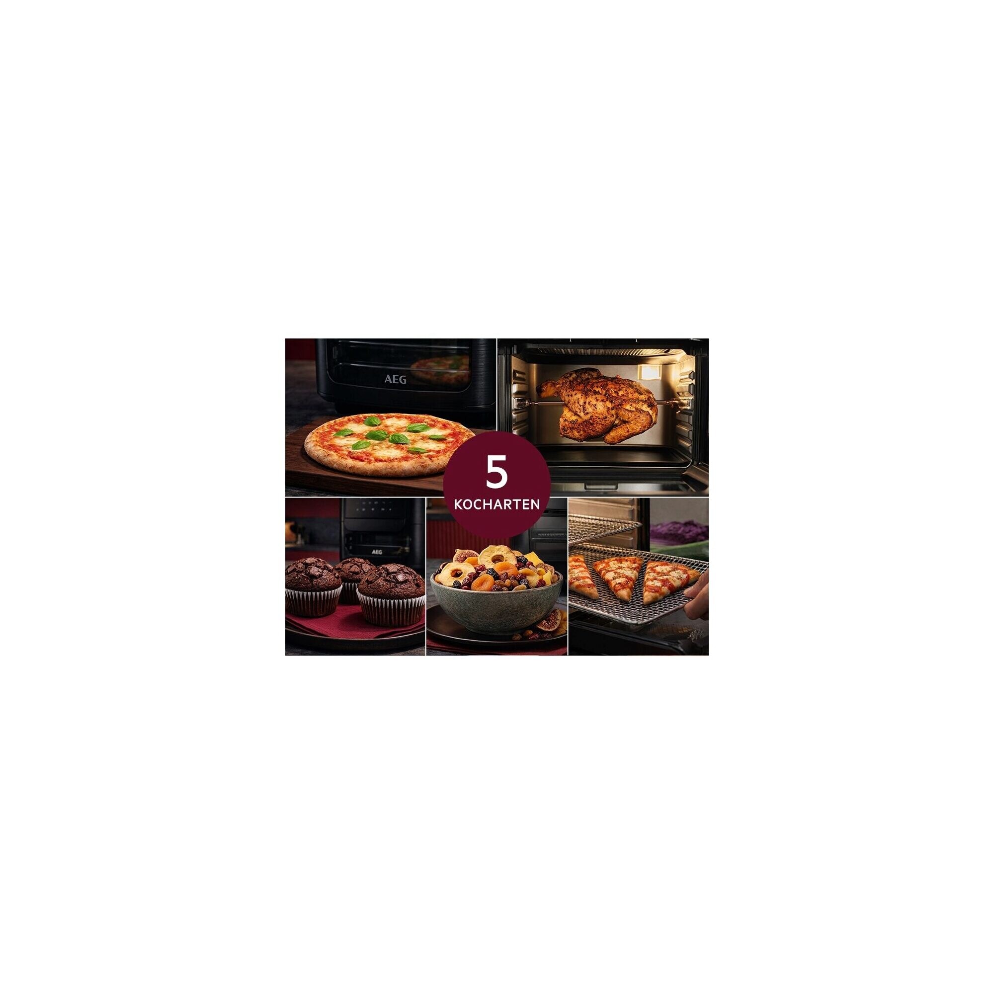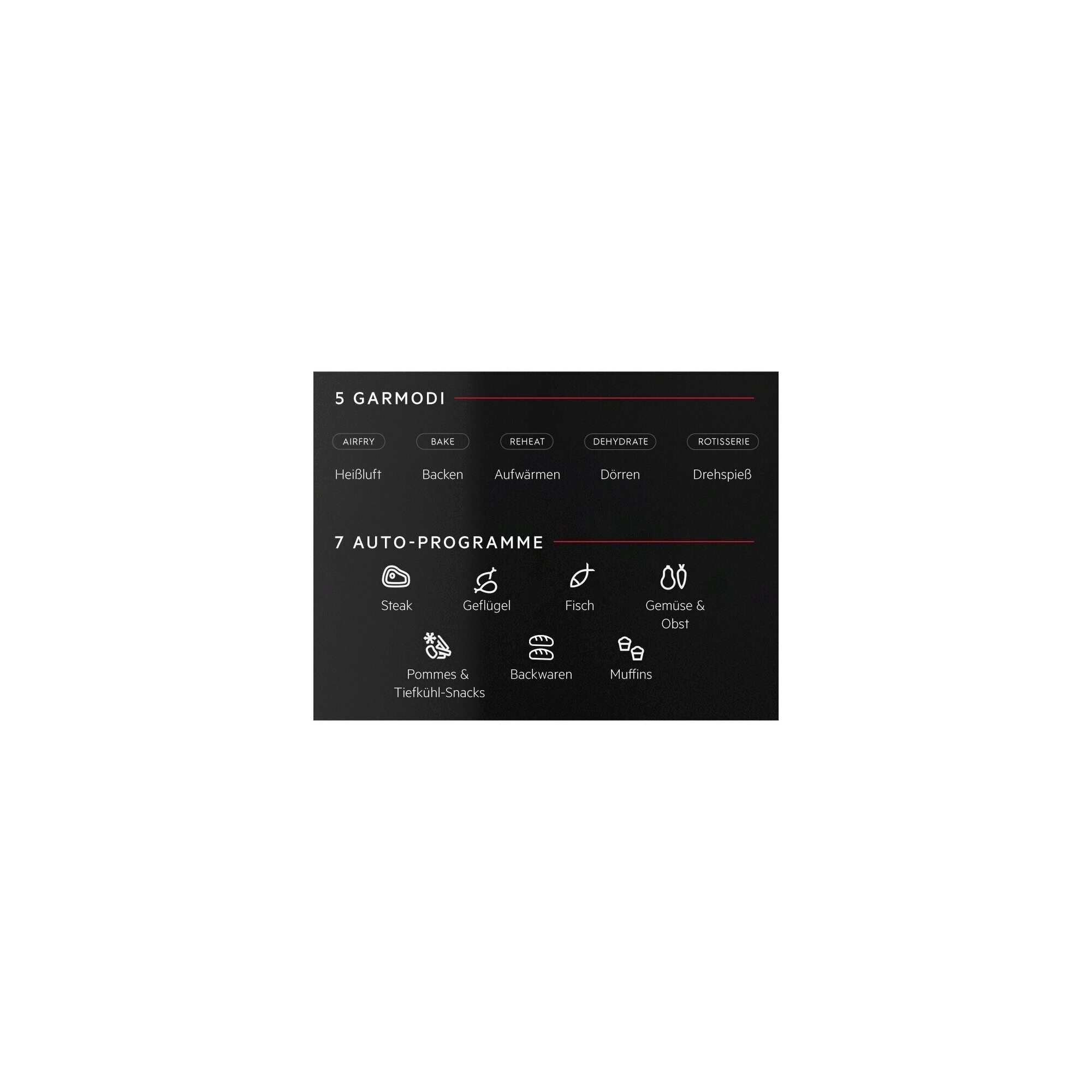 - Mehr-Modus-Betrieb: Heißluftfritteuse, Backen, Grillspieß und mehr.