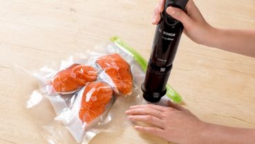 - Leistungsstarke Vakuum-Pumpe: entfernt Luft aus Vakuum-Box oder -beutel und versiegelt diese luftdicht; für Bosch ErgoMixx Stabmixer.