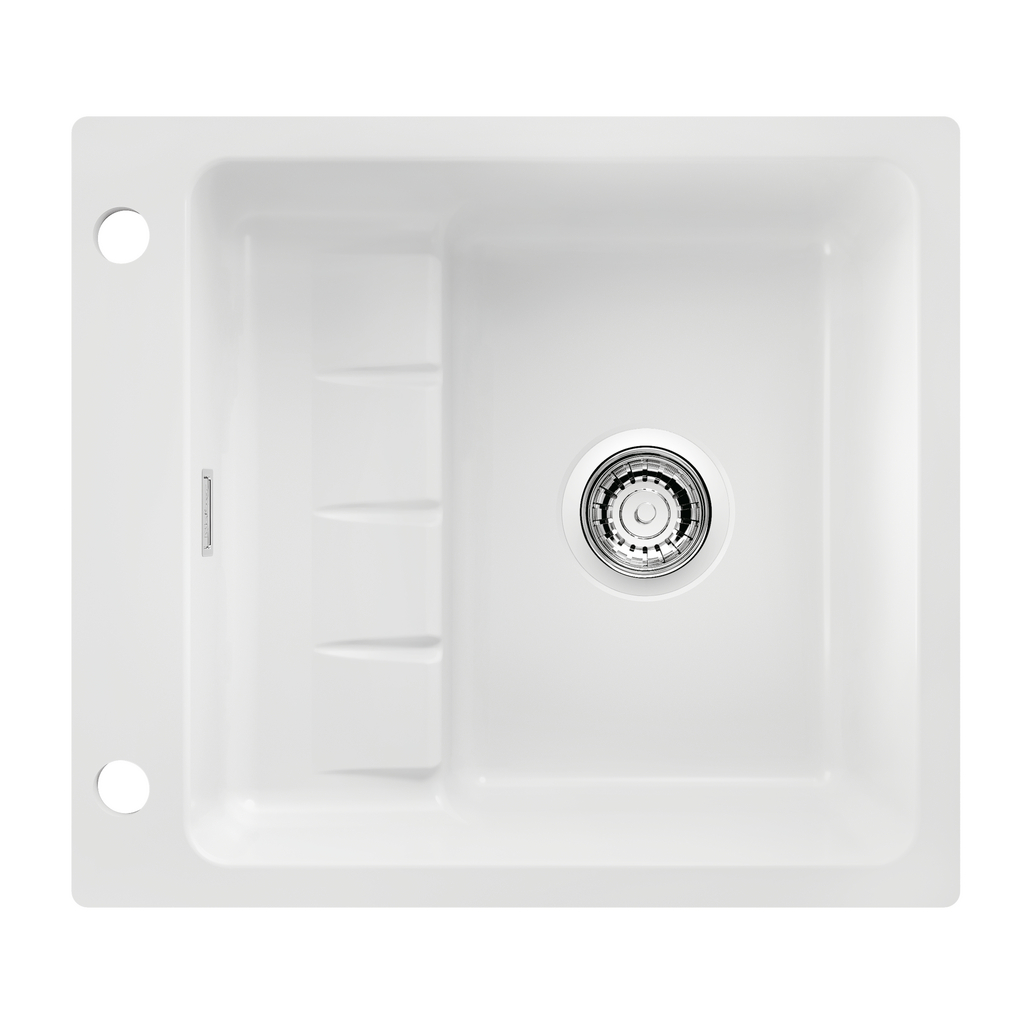 Einbauspüle flächenbündig. Keramik Einzelbecken mit zweiter Ebene reversibel 3½" Korbventil mit Premium-Drehexzentergarnitur verchromt Lochbohrung 1 + 2 durchgebohrt Ausschnittmaß ca. 550 x 490 mm R 12 mm Plattenstärke: 30 mm benötigen einen umlaufenden Falz oder Auflagestege5 Jahre Garantie auf HerstellungsfehlerDesign by Hans Winkler Design Grafenau.