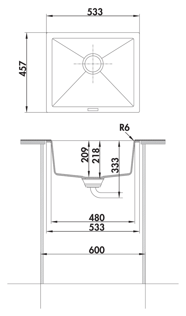 Einzelbecken. 3½" Korbventil mit Drehexzentergarnitur