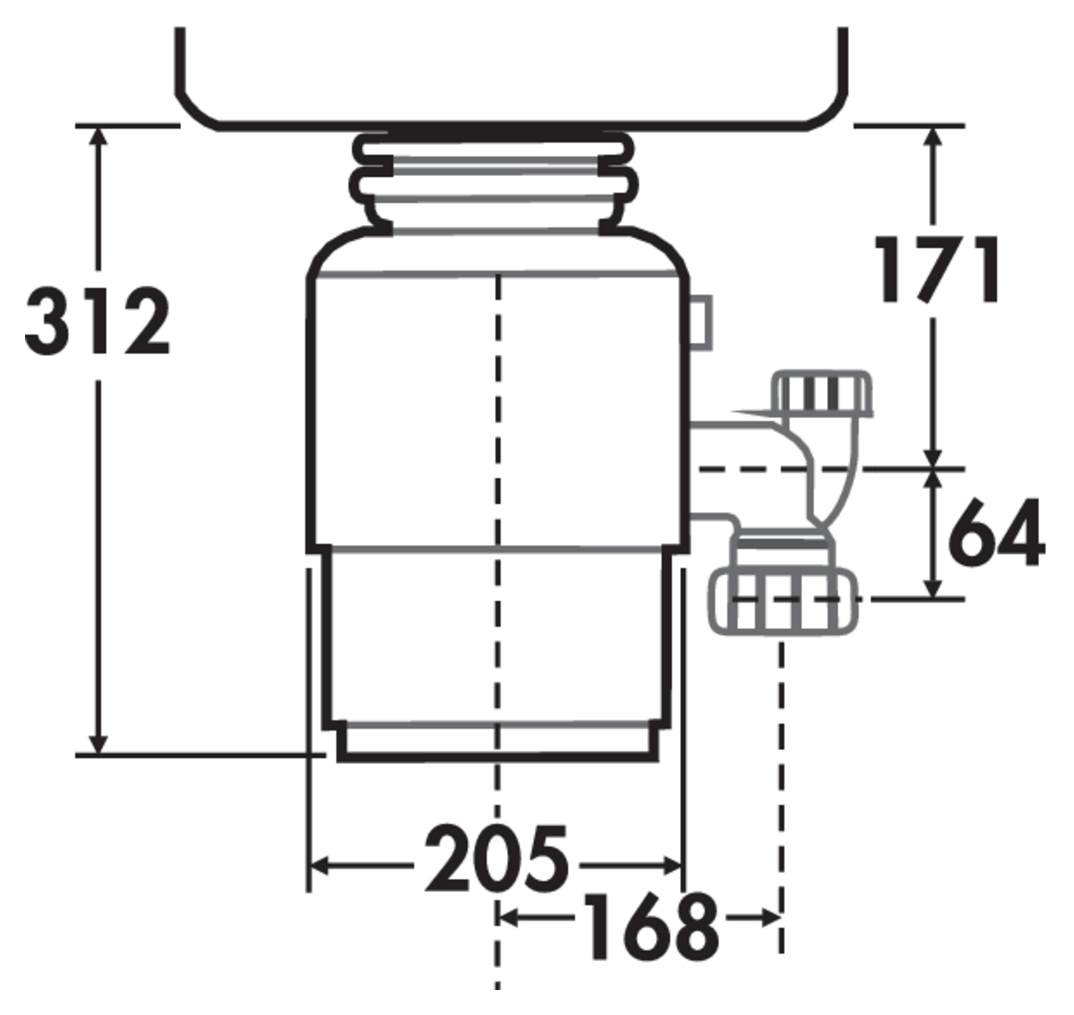 - Motor mit 0,7 PS. Passend für 3½" Abläufe. Bitte informieren Sie sich vor dem Einbau der Abfallzerkleinerer über die regionalen gesetzlichen Vorschriften bei den zuständigen Behörden!