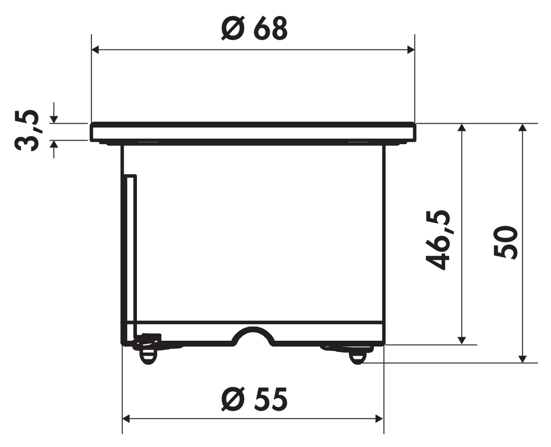 Steckdosenelement - 1fach. Zierringe edelstahlfarbig - weiß und schwarz. Zum Einbau in Arbeitsplatte - Frontblende oder Seitenwand - Bohr-Ø 56 mm - Einbautiefe ca. 45 mm - 2000 mm Netzanschlussleitung - Schukostecker lose beigelegt - Kabelauslass hinten