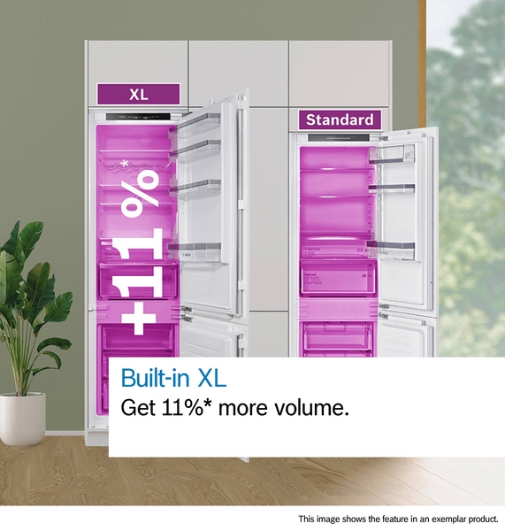 - Einbau-Kühlschrank XL: bis zu 11%mehr Nutzvolumen dank des höheren Designs.
