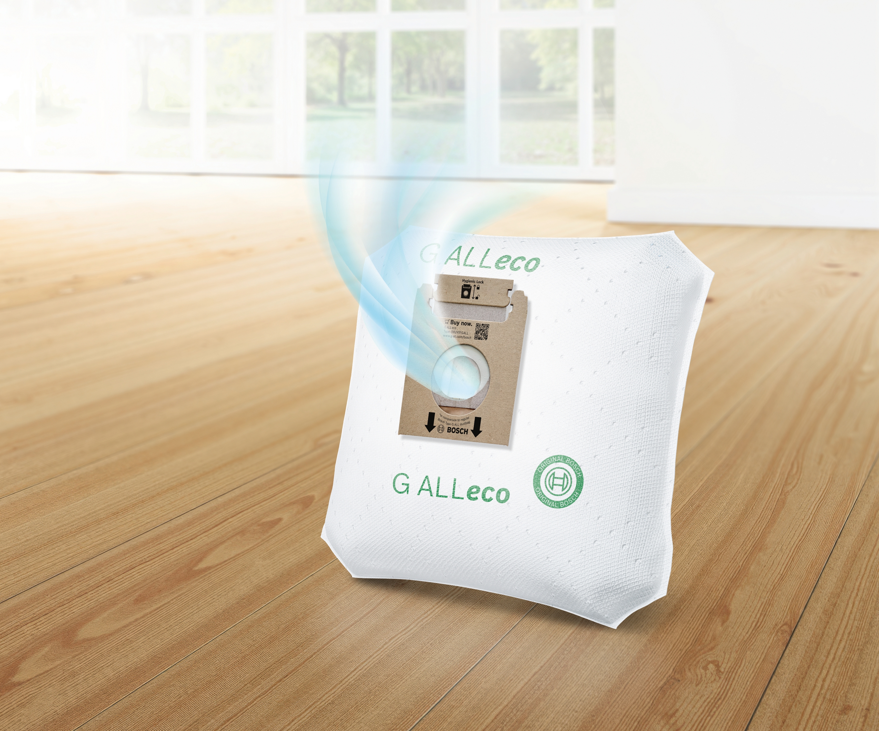 50 % weniger Kunststoff im Vergleich zu herkömmlichen Bosch Typ G Staubbeuteln.