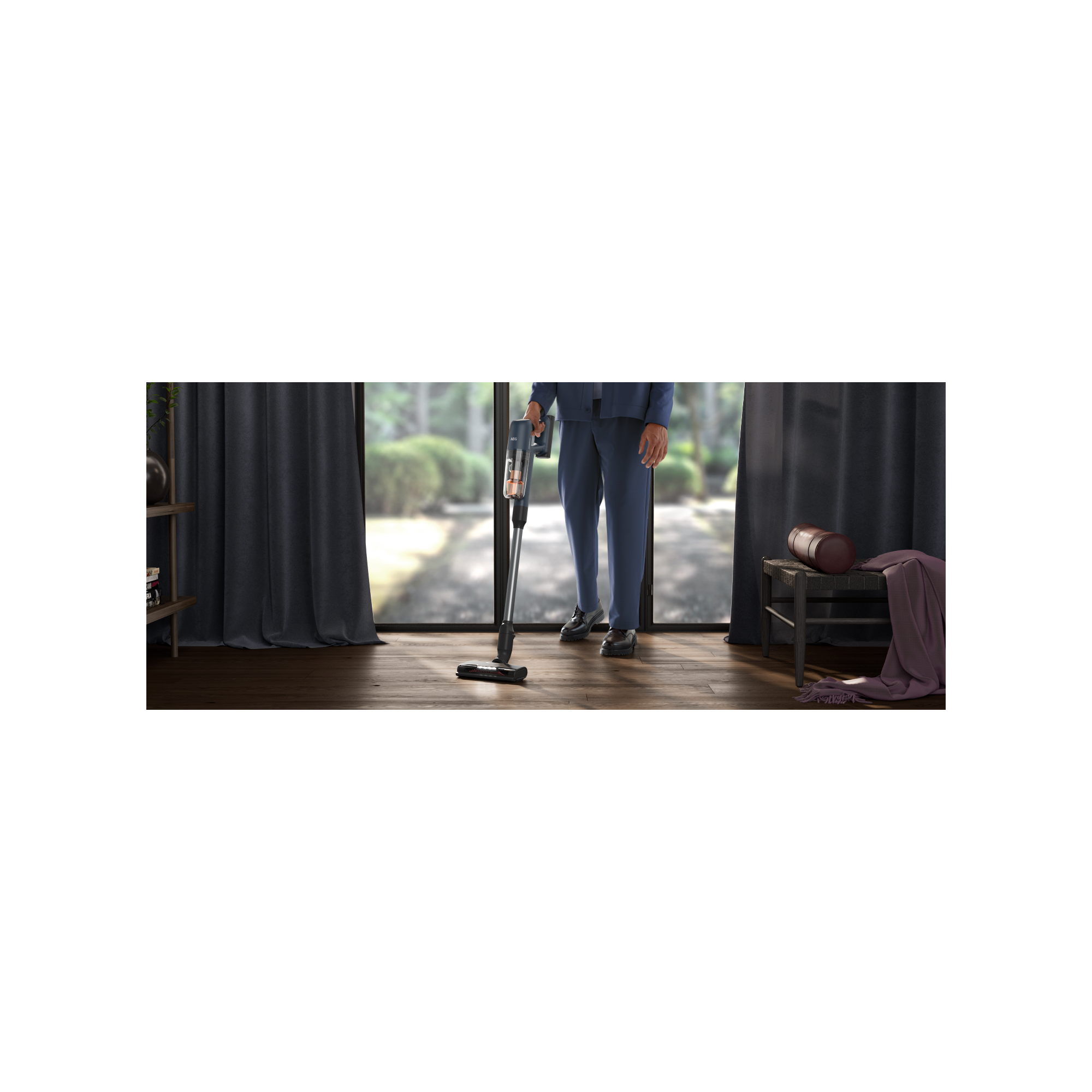 Gründlich reinigen mit einer einzigen Akkuladung. Der neu konzipierte kompakte und leistungsstarke Akku hat eine Laufzeit von bis zu 50 Min*.mit dem Handteil und 40 Minuten bei Verwendung der Bodendüse für die Reinigung von bis zu 120 m².