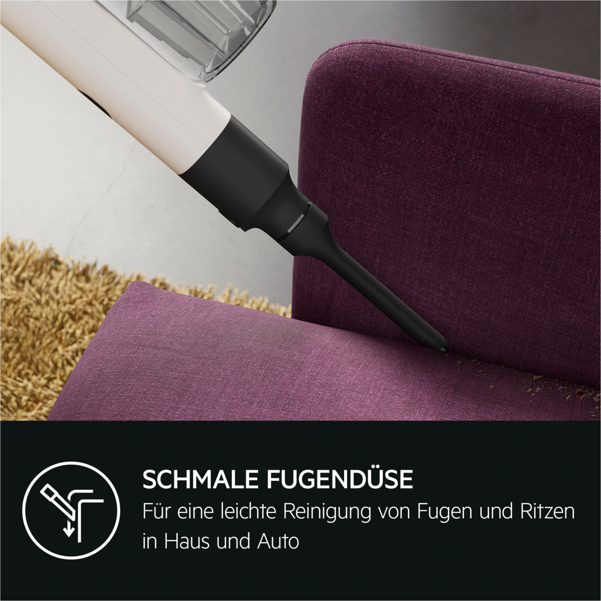 *Basierend auf internen Tests zur Saugleistung am Handgerät nach IEC 62885-2, im Vergleich zum Modell AEG CX7-2-35WR