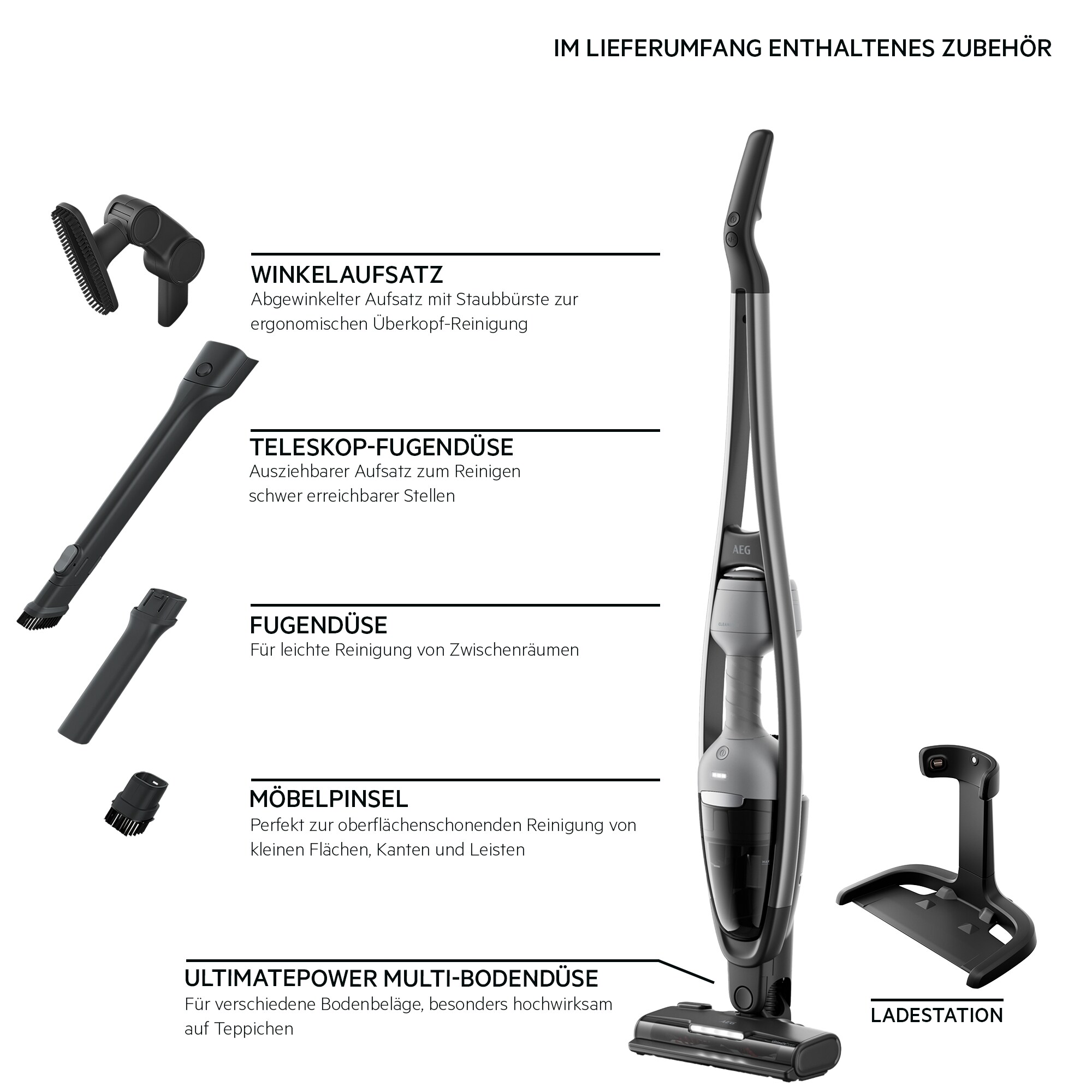 - Ladestation,Möbelpinsel, Fugendüse, Teleskop-Fugendüse, Winkelaufsatz mit Staubbürste, zusätzlicher E10 Hygienefilter