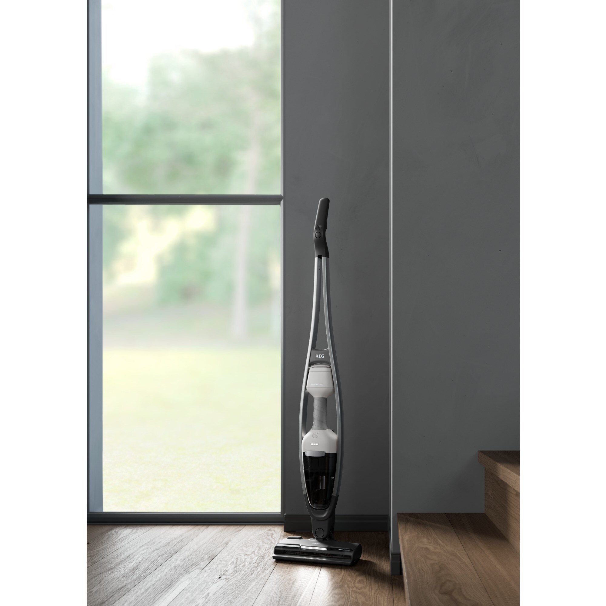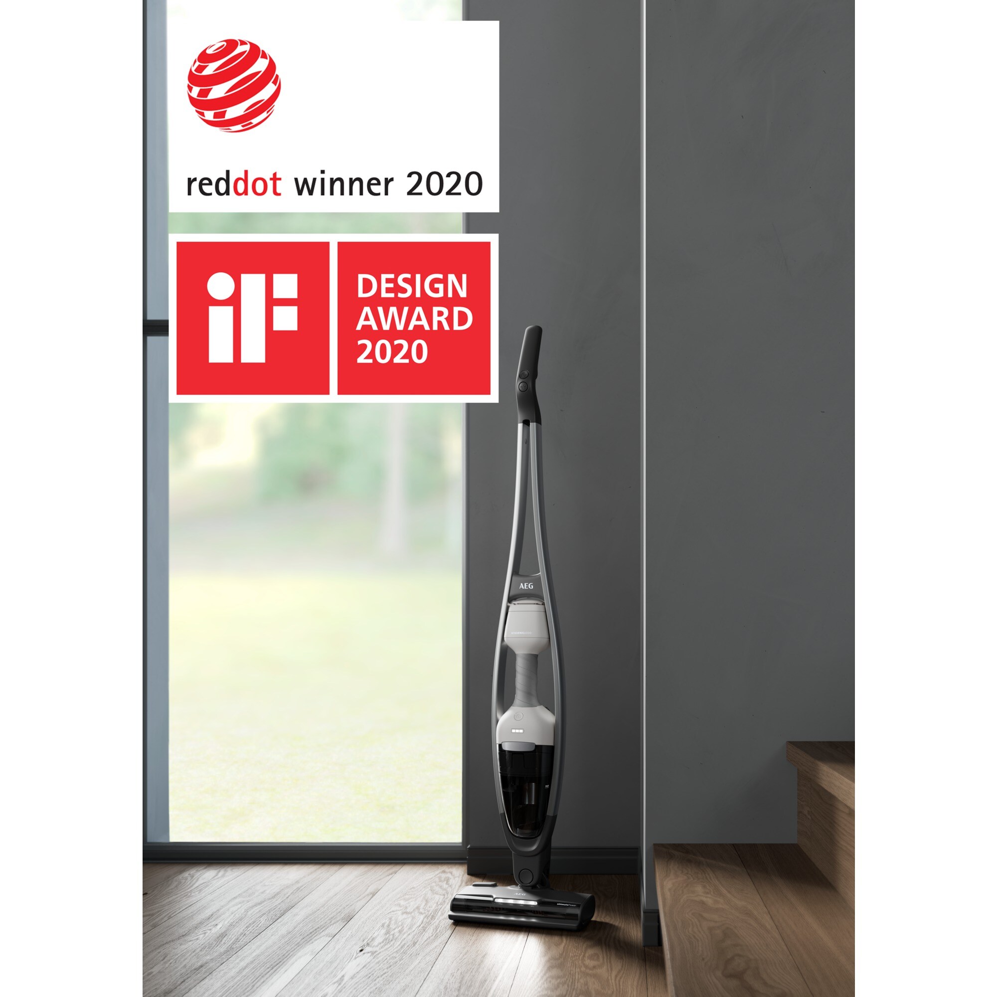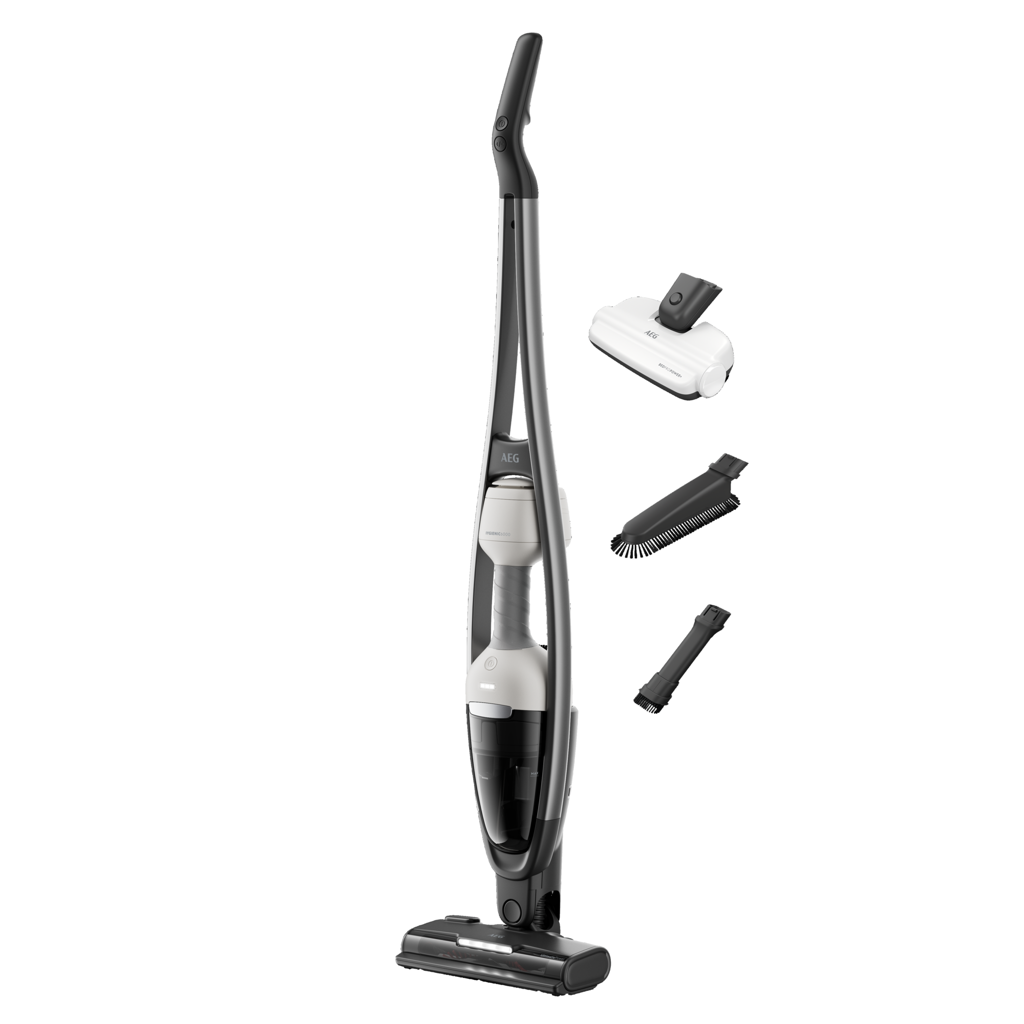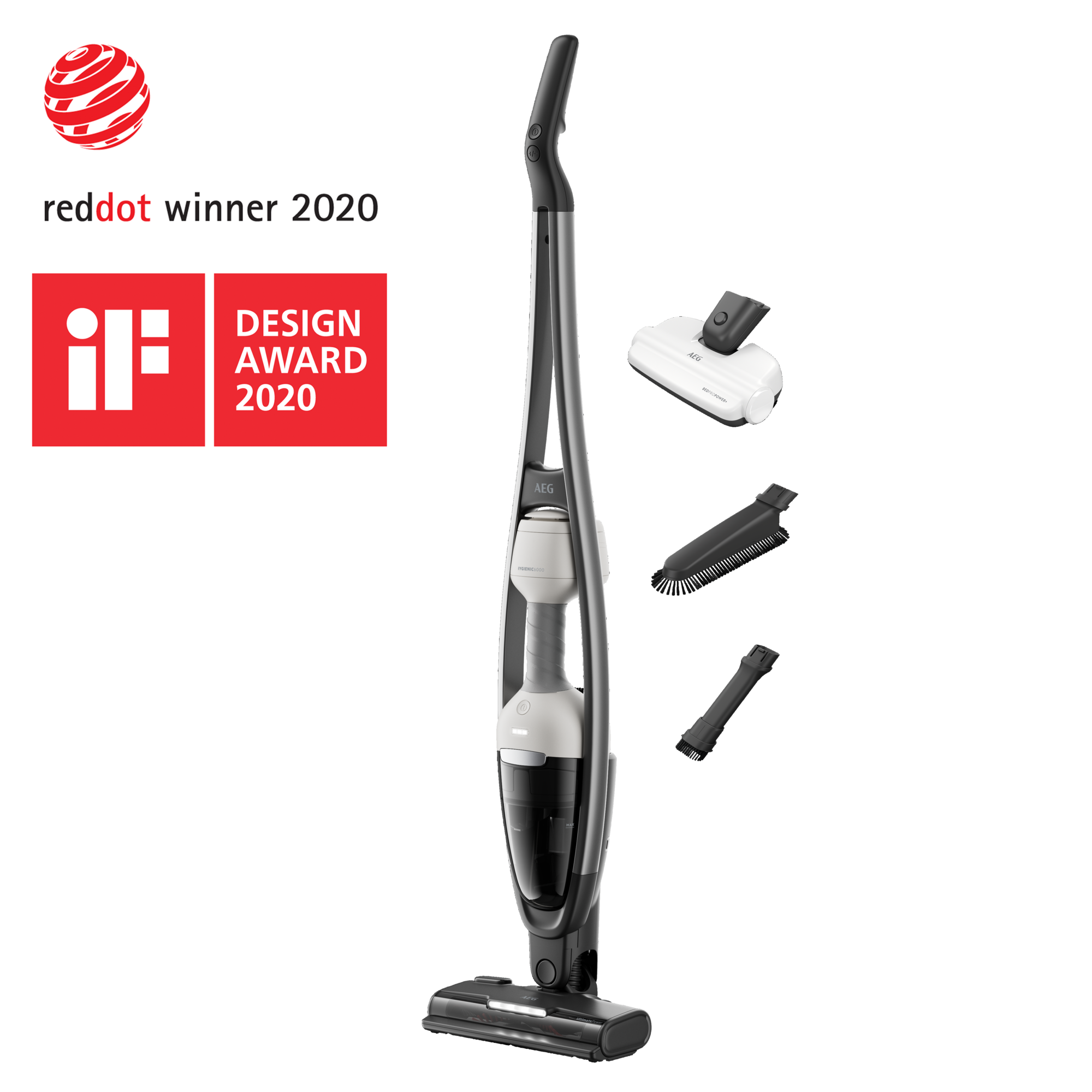 ** Interne Tests gemäß ISO 3743 am Handteil, verglichen mit anderen Akku-Staubsaugern von AEG, wie dem Modell QX6-1-44SW (Aug, 2021).