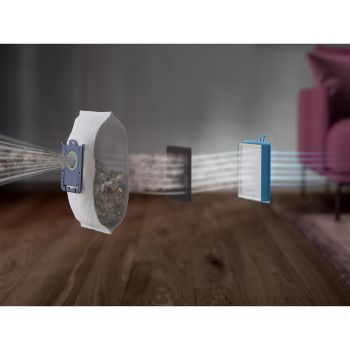 Effizientes Filtersystem ermöglicht die Entfernung von bis zu 99,99 %* der Partikel, die größer als 3 Mikrometer sind - für saubere Abluft beim Staubsaugen.