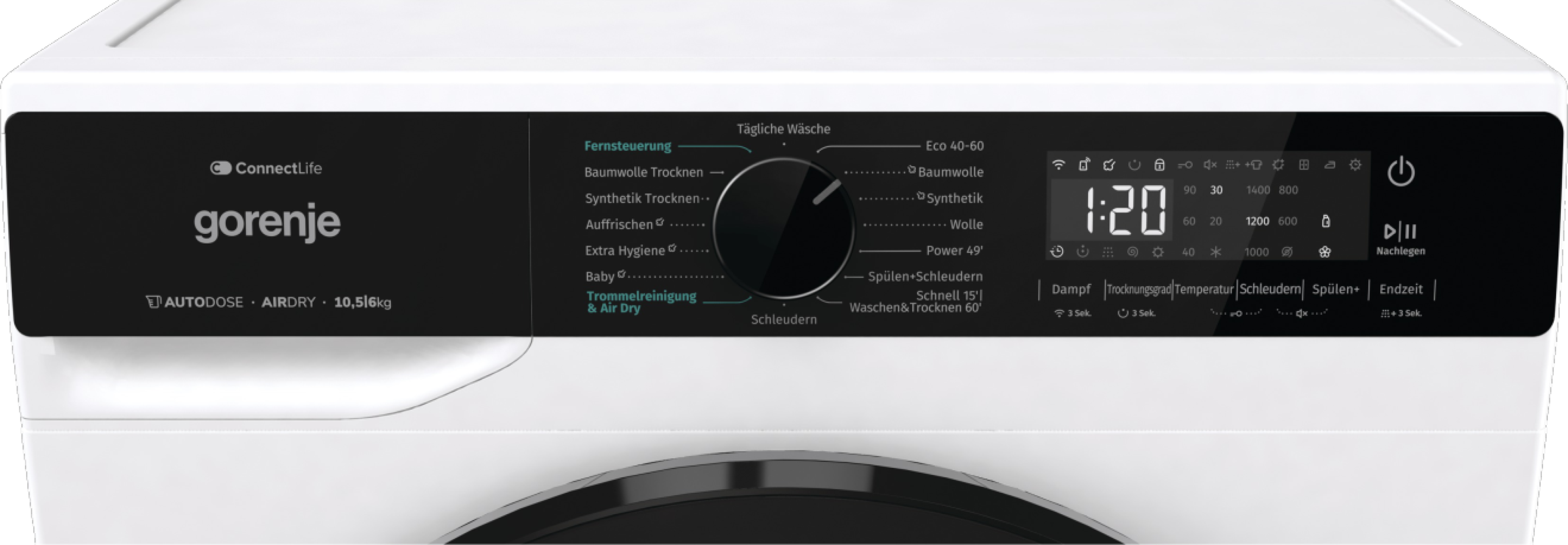 - Energieeffizienzindex im Wasch- und Trocken-Betrieb (EU 2017/1369): 1.09