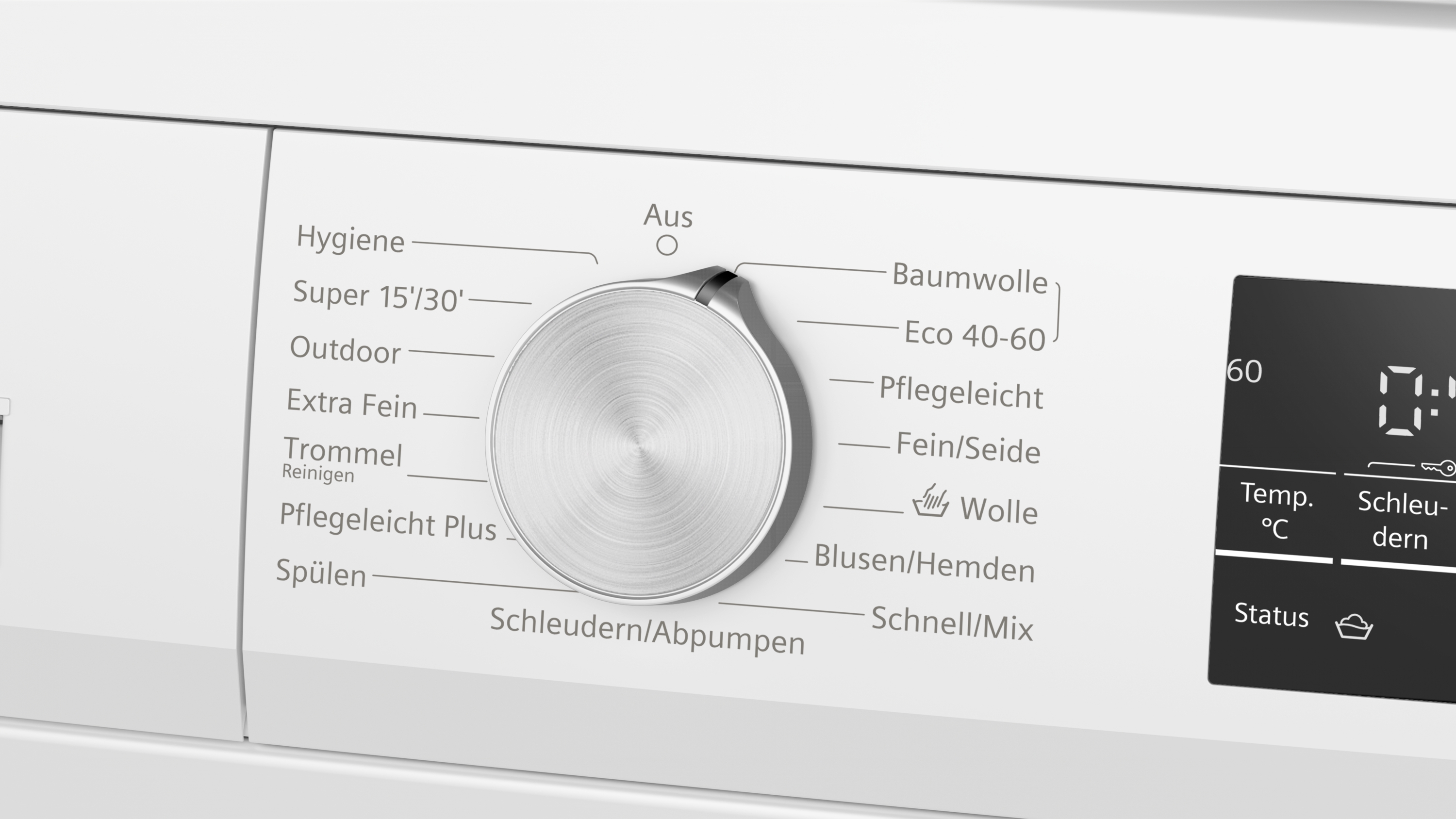 - Unterbaufähige iSensoric Waschmaschine mit iQdrive-Motor für wirkungsvolle und effiziente Wäschepflege und mit besonders gut lesbarem Display.