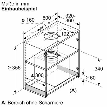 Einbaumaße (HxBxT): min. 340 mm x 560 mm x min. 300 mm