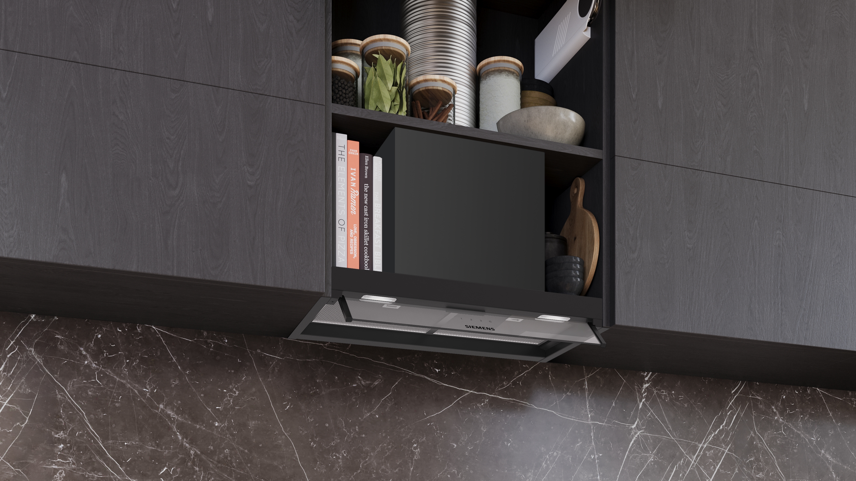 - Nahtlose Integration: flächenbündiger Einbau für eine nahezu unsichtbare Installation im Oberschrank.