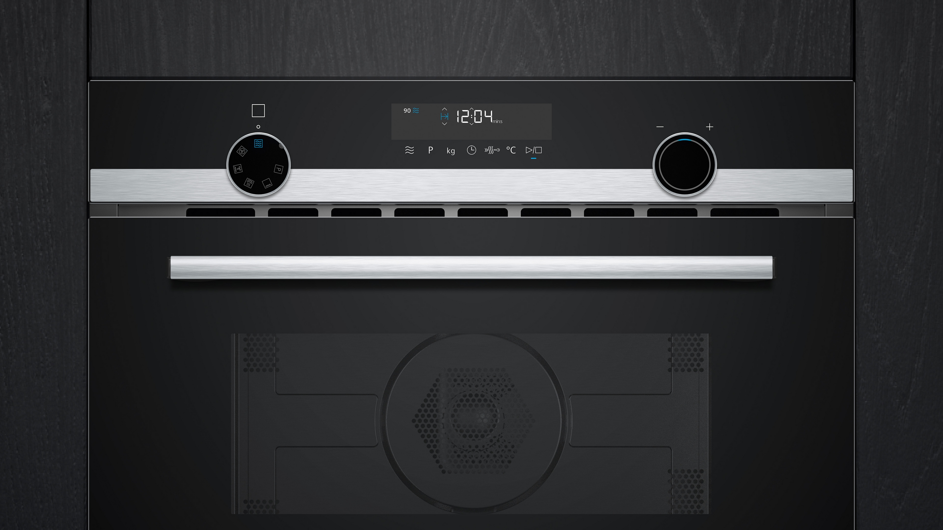 Einbau-Mikrowelle mit Heißluftfunktion mit den Heizarten: Mikrowelle, Heißluft, Umluftgrill, Großflächengrill, Warmhalten