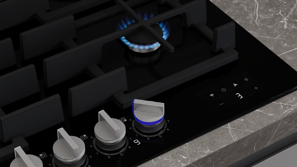 - Gaskochfeld aus Hartglas mit stepFlame-Technologie für eine präzise Steuerung der Flamme, intelligenter Dunstabzugsautomatik, abnehmbaren Schwertknebeln und halbdurchgehenden Topfträgern für eine mühelose Reinigung.